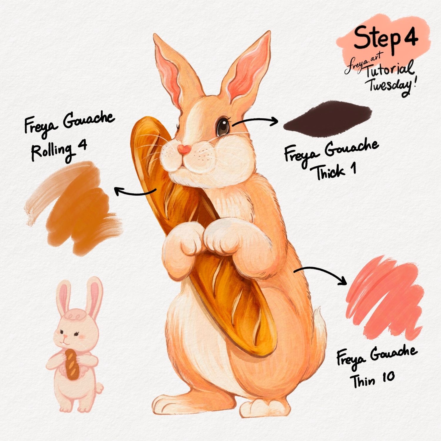 Step 3: Time to add the base colors for each element of the illustration. Use Freya Gouache Thick No. 1 brush. Label the layers as "bunny base" and "bread base".