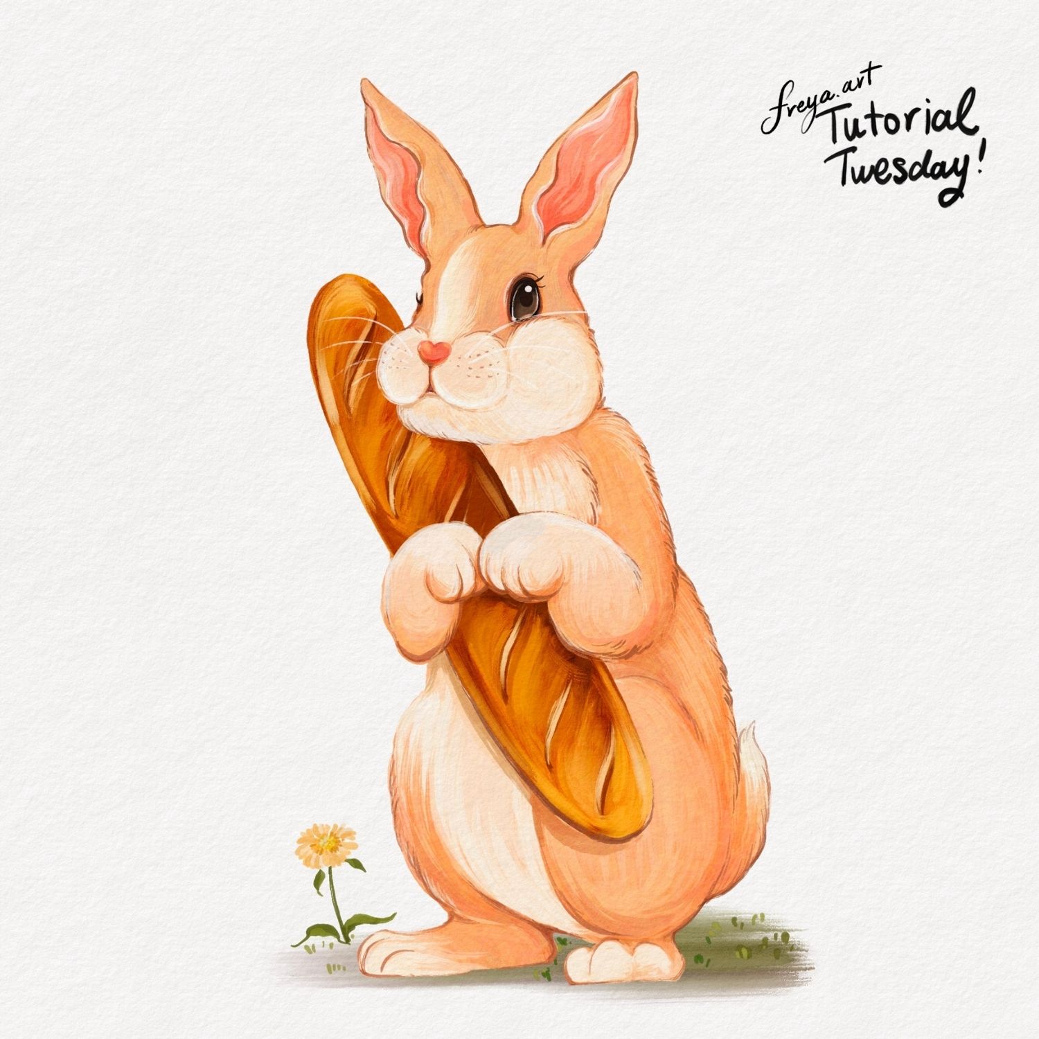 Hello! Try this quick tutorial to help you get acquainted with the Freya Realistic Gouache Brush Set! We're going to draw a simple bunny illustration using free brushes from my Freya Realistic Gouache Brush Set for Procreate.
