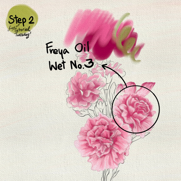 Hello and welcome to this Carnation Tutorial. We'll be using the premium brushes from my Freya Oil Paint Brush Set! Please download the tutorial files before we begin. You'll get the sketch, palette swatches and tutorial PDF for this project. Once you're ready, feel free to pause and play the video as needed.