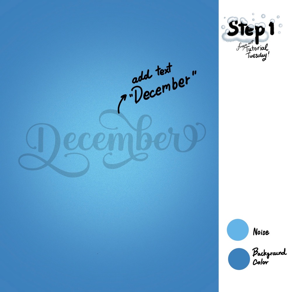 Step 1: Then create a 3000 x 3000-pixel canvas and import the template file. Change the background color and use the Noise brush in the middle to create a focal point in a light blue color. Lock this layer so we don’t accidentally draw on it. Then import the lettering template that we’ll use as a guide.