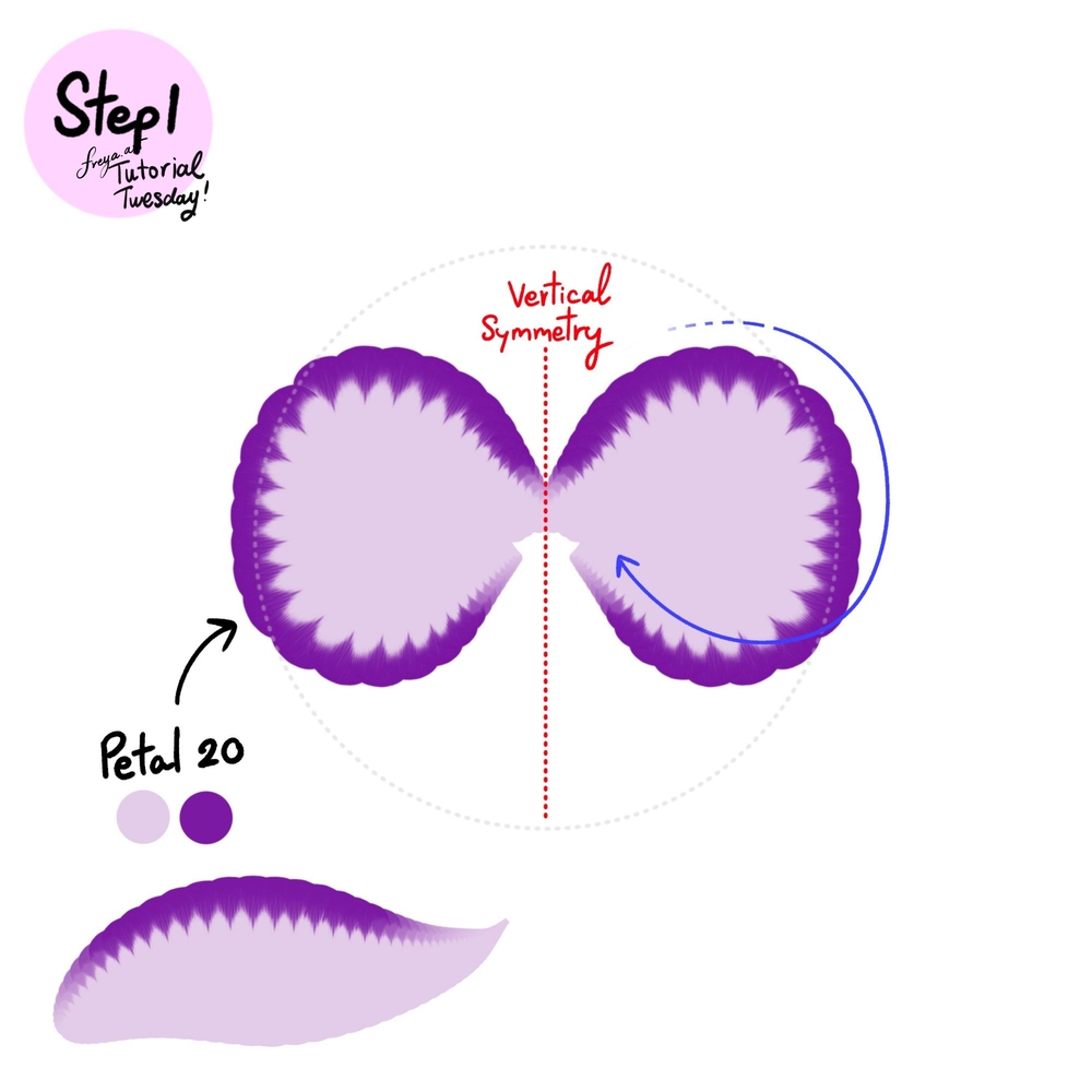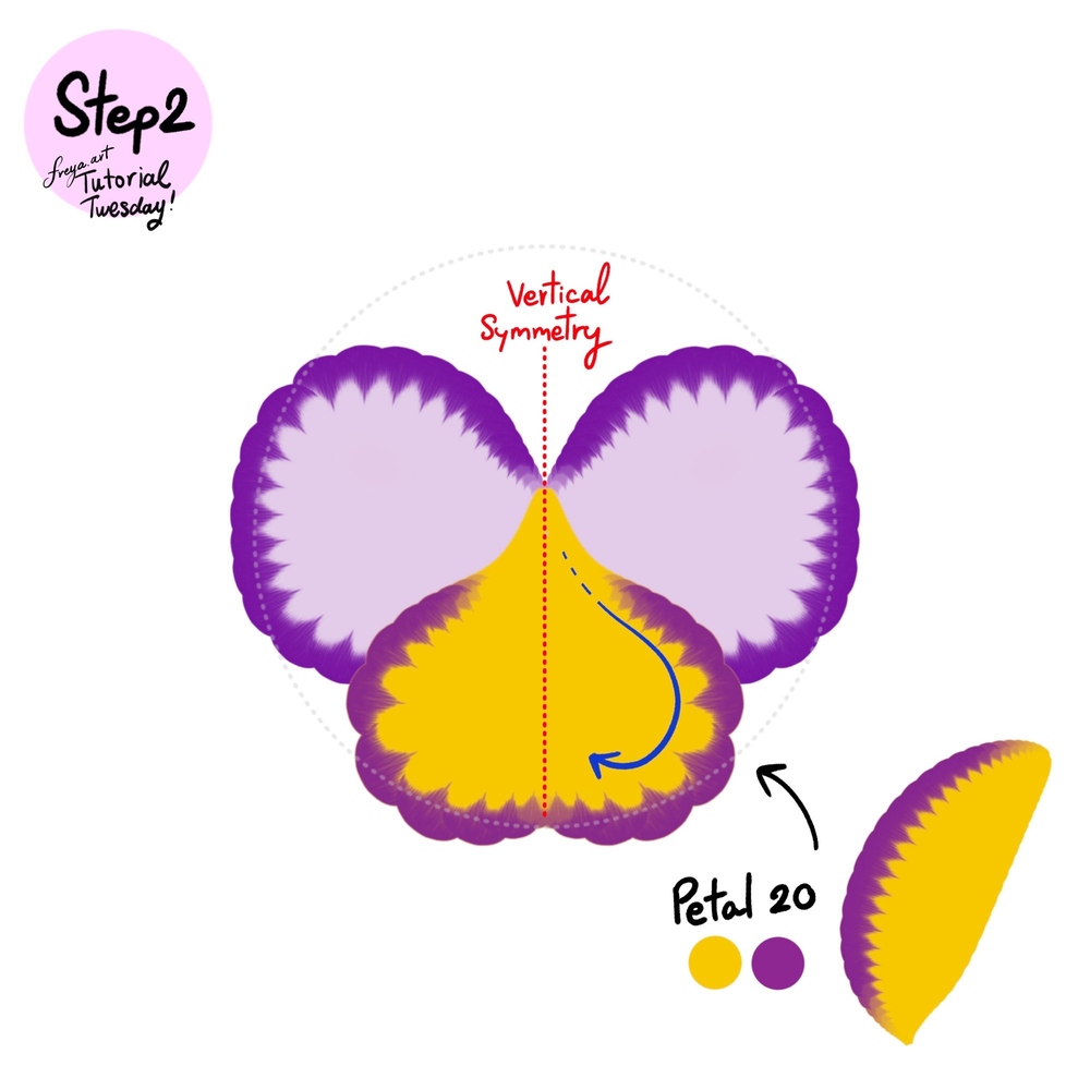 Step 1: Let's start with a 3000 x 3000-pixel canvas at 300 DPI. Then go to Actions > Enable Drawing Guide > Edit Drawing Guide > Choose Symmetry > Options > Vertical. Then set the colors and use Petal No. 20 and draw in a clockwise motion.
