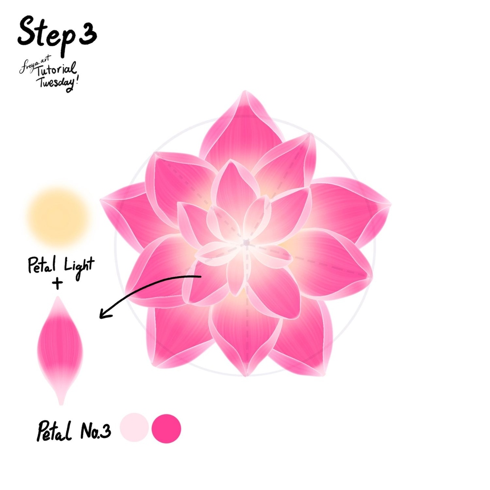 Step 3: Add a new layer and continue overlapping smaller petals using the same method, until you have 4 layers of petals. Once you're happy with how your Lotus looks, you can merge all the layers.
