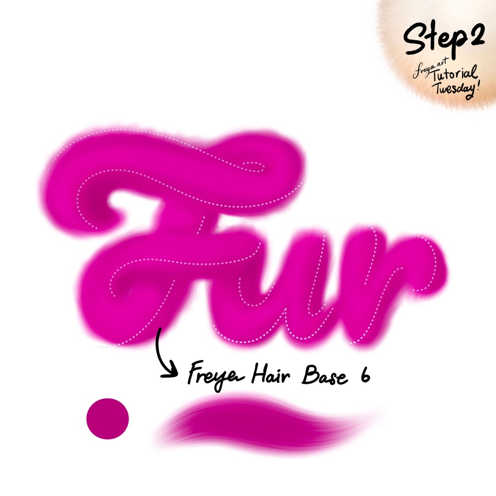 Step 3: Add a new layer. This time you don’t need to clip it. Use the Freya Hair Detail No. 3 brush in a lighter pink color, to draw the fur texture in an outward motion.