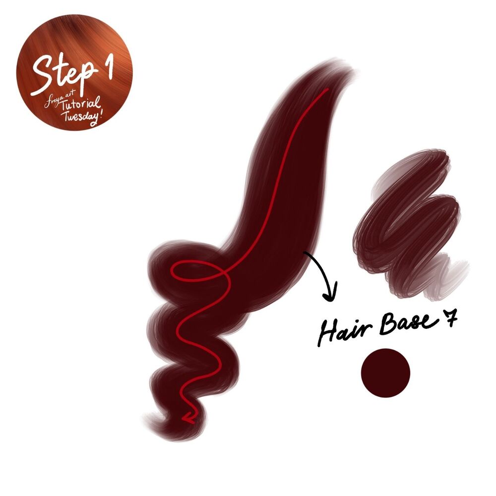 Step 1: Let’s start by creating a 3000 x 3000 pixel canvas. In the first layer, use the dark brown color and Freya Hair Base No. 7 brush to draw the general shape we’ll be working with.