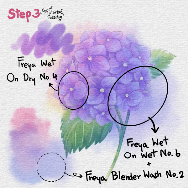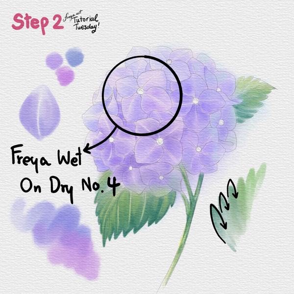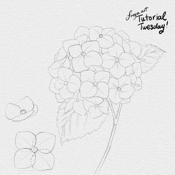 Hello and welcome to this free tutorial! Today we'll be working on this Hydrangea Tutorial made using the sampler brushes from my Ultimate Watercolor Brushset! Please download the tutorial files first. You'll get the sampler brushes, tutorial PDF, swatches, and sketch for this project. Watch and pause the video as needed while we draw together.