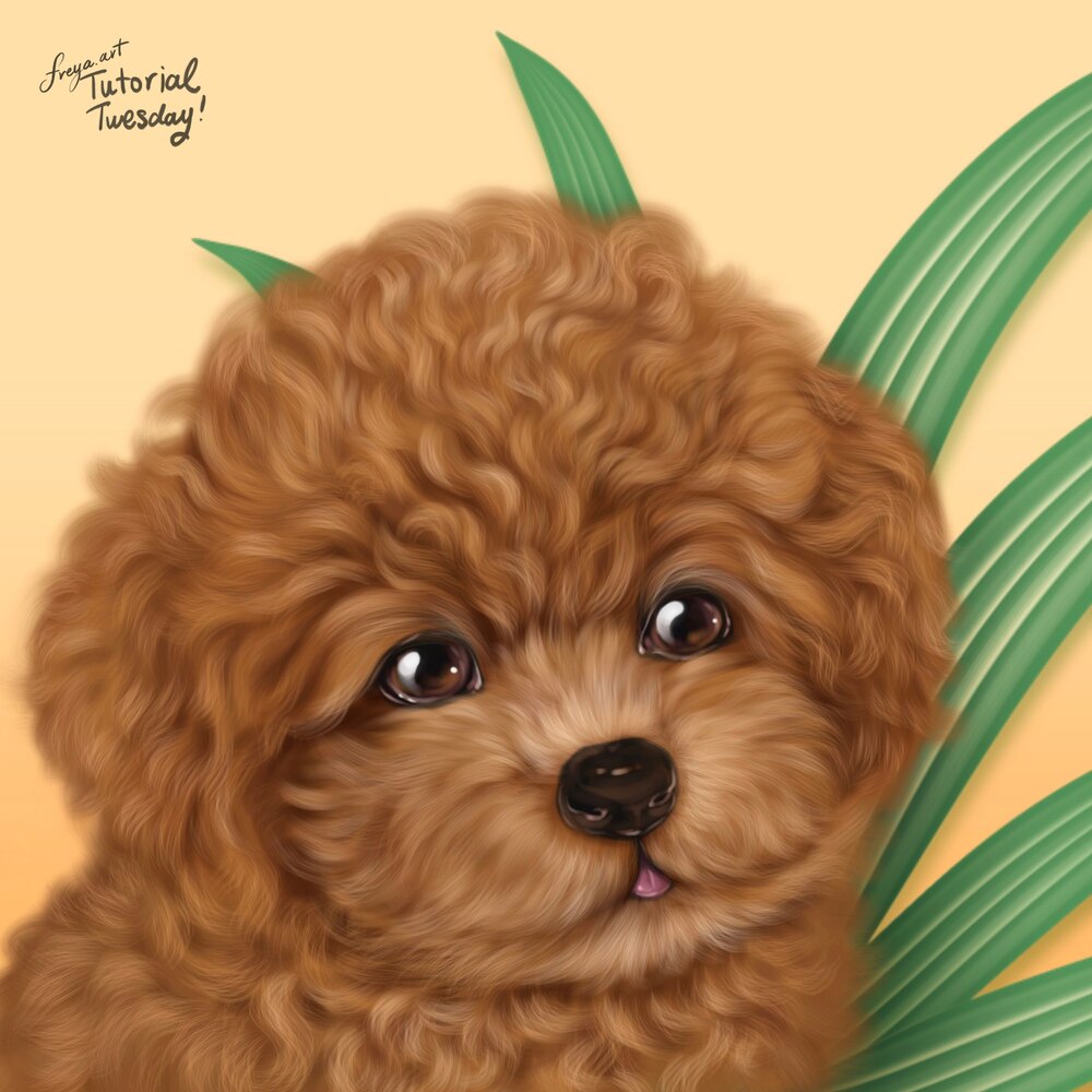 In this tutorial, we are going to paint a curly-haired poodle portrait using brushes from my Pet Portrait Purrfection Course. Please download the tutorial files before you begin. It will include the sketch, swatch palette, and free brushes.