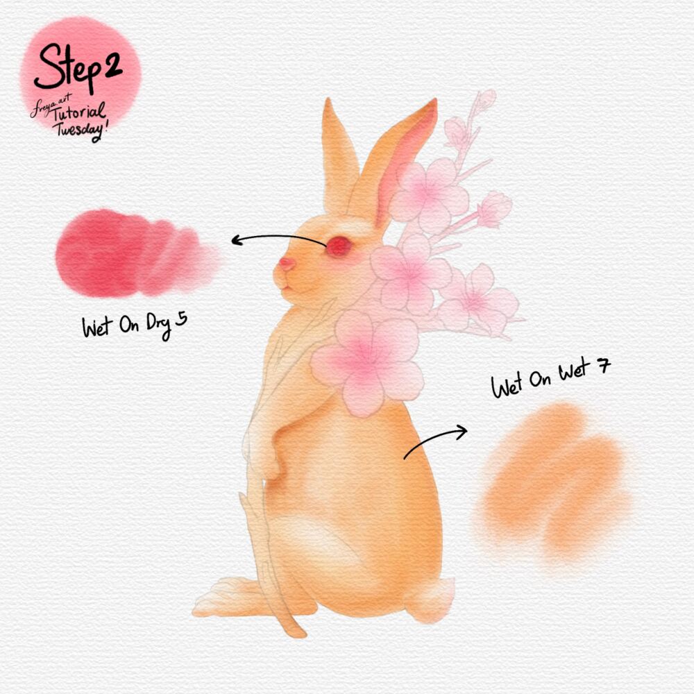 Step 2: Add another layer on top of the rabbit base and set it as a clipping mask. Now you can start layering more colors using the Wet on Wet No. 7 brush and Wet on Dry No. 5. And because the layer is clipped, your brush strokes will stay within the bounds of the base layer.