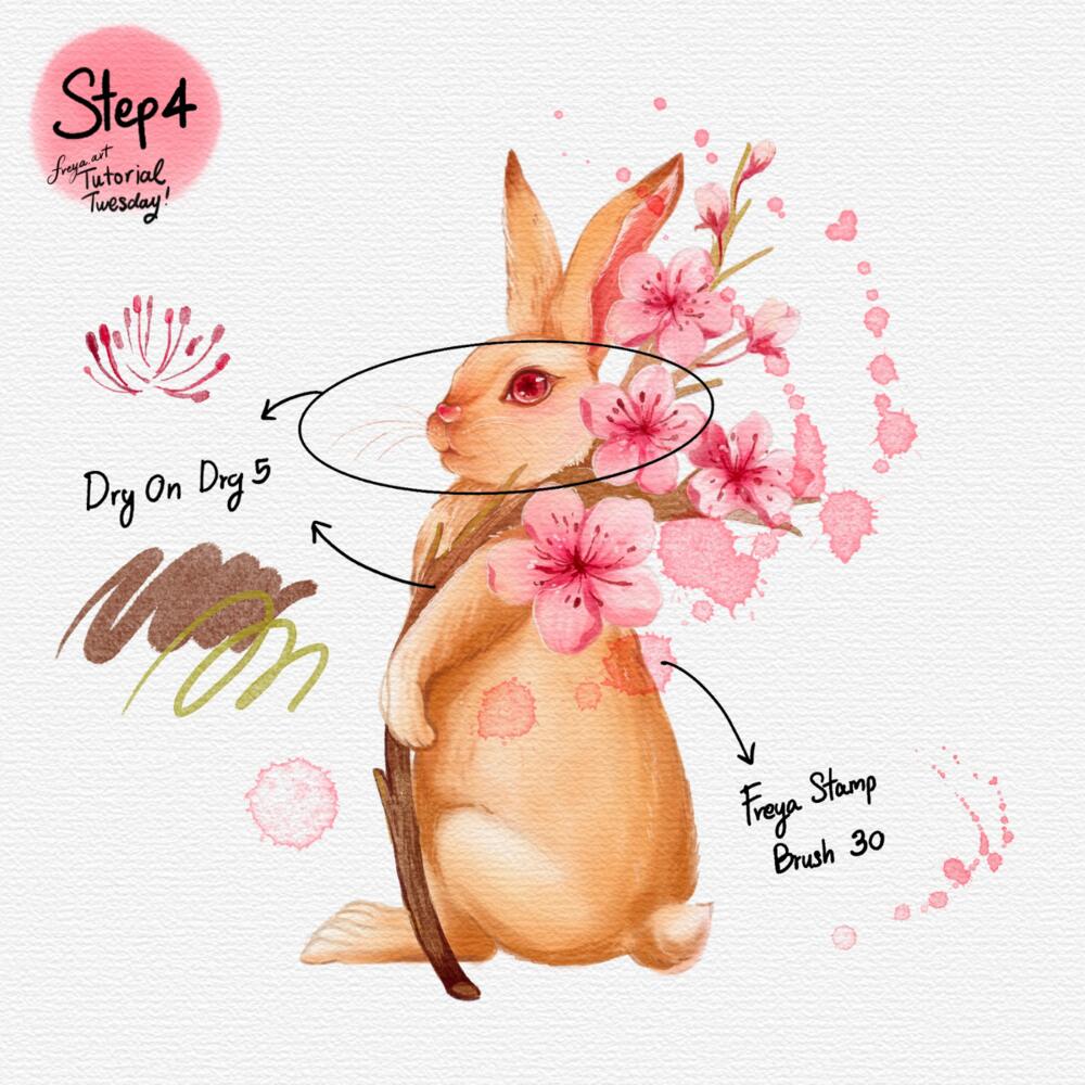 Step 4: Add the branch using Freya Dry on Dry No.5. You can also add Freya Brush Stamp No. 30 for a bit of embellishment. And now you've completed this short and sweet tutorial using the brushes from the Ultimate Watercolor Brush Set. I hope you had fun! 😍 Please share your finished project online and tag me. I'd love to see your version. 🐇